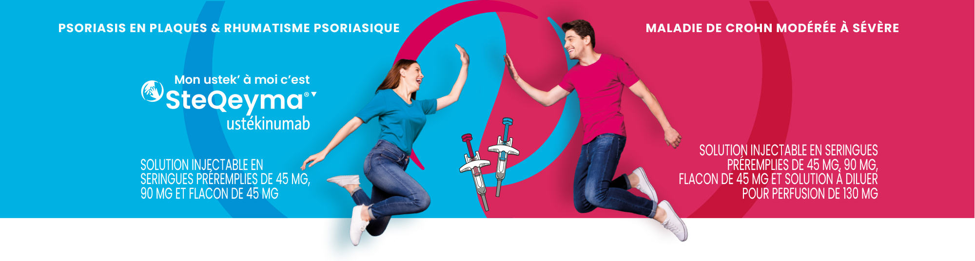 SteQeyma® 45 mg et 90 mg, solution injectable en seringue préremplie et en flacon de 45 mg.